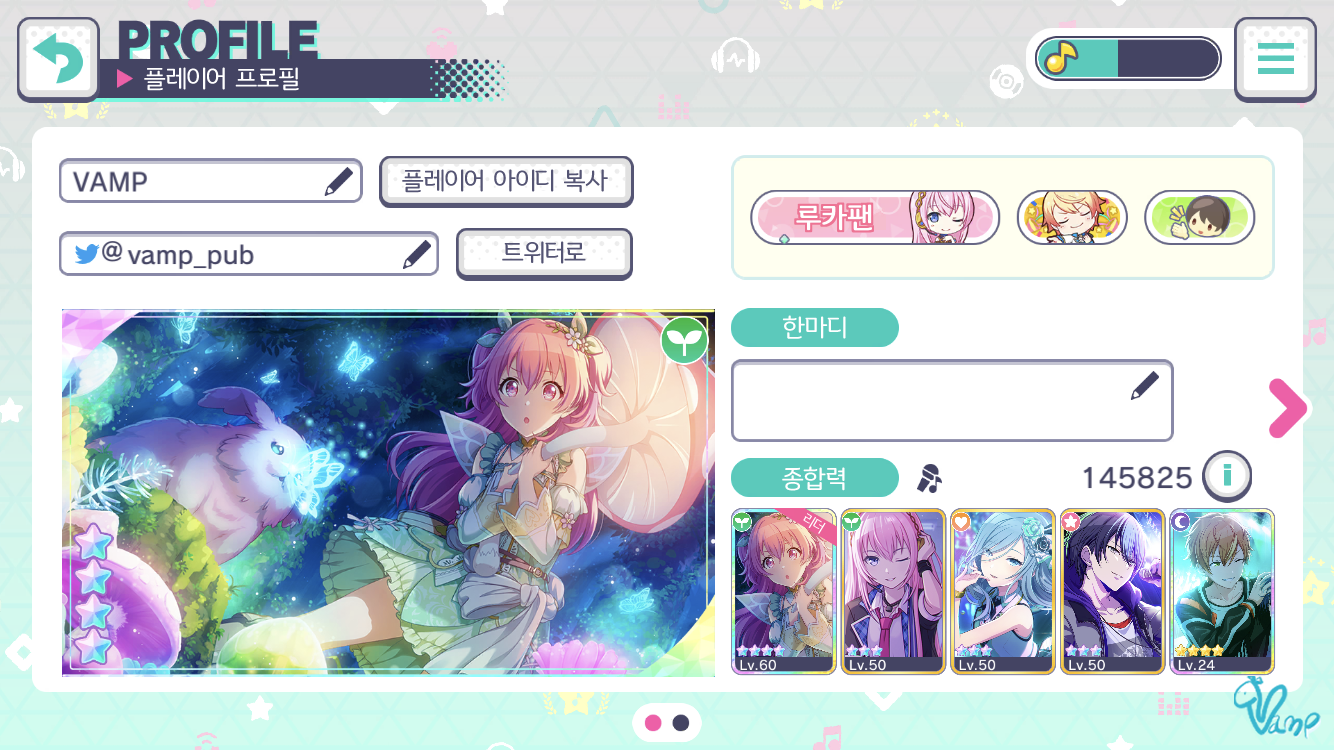 더보기 ღ 게시글 로그 ღ 2021-05-16 게시글 작성 ✿ 플레이어 상태바 ✿ 플레이어 랭크 ✿ 크리스탈 ✿ 라이브 보너스 안녕하세요 뱀(VAMP)입니다! :3 프로세카 또는 프세카 시스템 중 플레이어 상