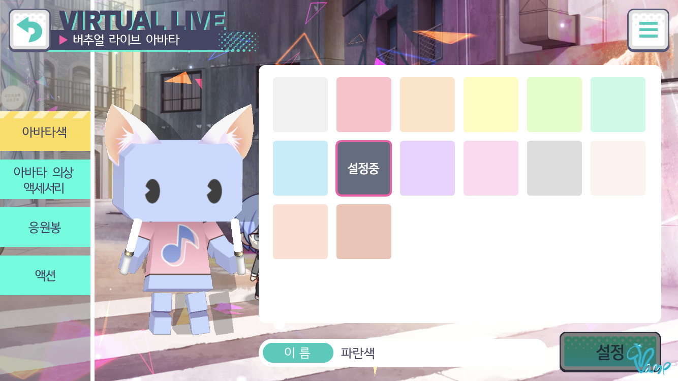 - 버추얼 라이브 입장 시 보여지는 내 캐릭터(아바타)를 설정